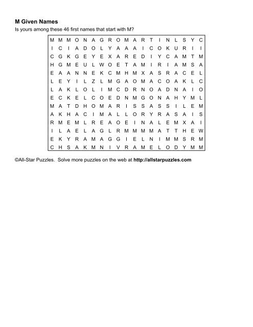 Word Puzzles Names - This one is a personal favorite of this writer, so we're happy to put it front and center!. Puzzles are 100% free to play and work on desktop pc, mac, mobile and tablet. It's probably easiest to start at the top left), join the hexagons by creating a new word that is only one letter different … This one is a personal favorite of this writer, so we're happy to put it front and center! They are fun to play, but also educational, in fact, many teachers make use of them. Feb 17, 2020 · 8 types of word puzzles to keep you sharp 1.